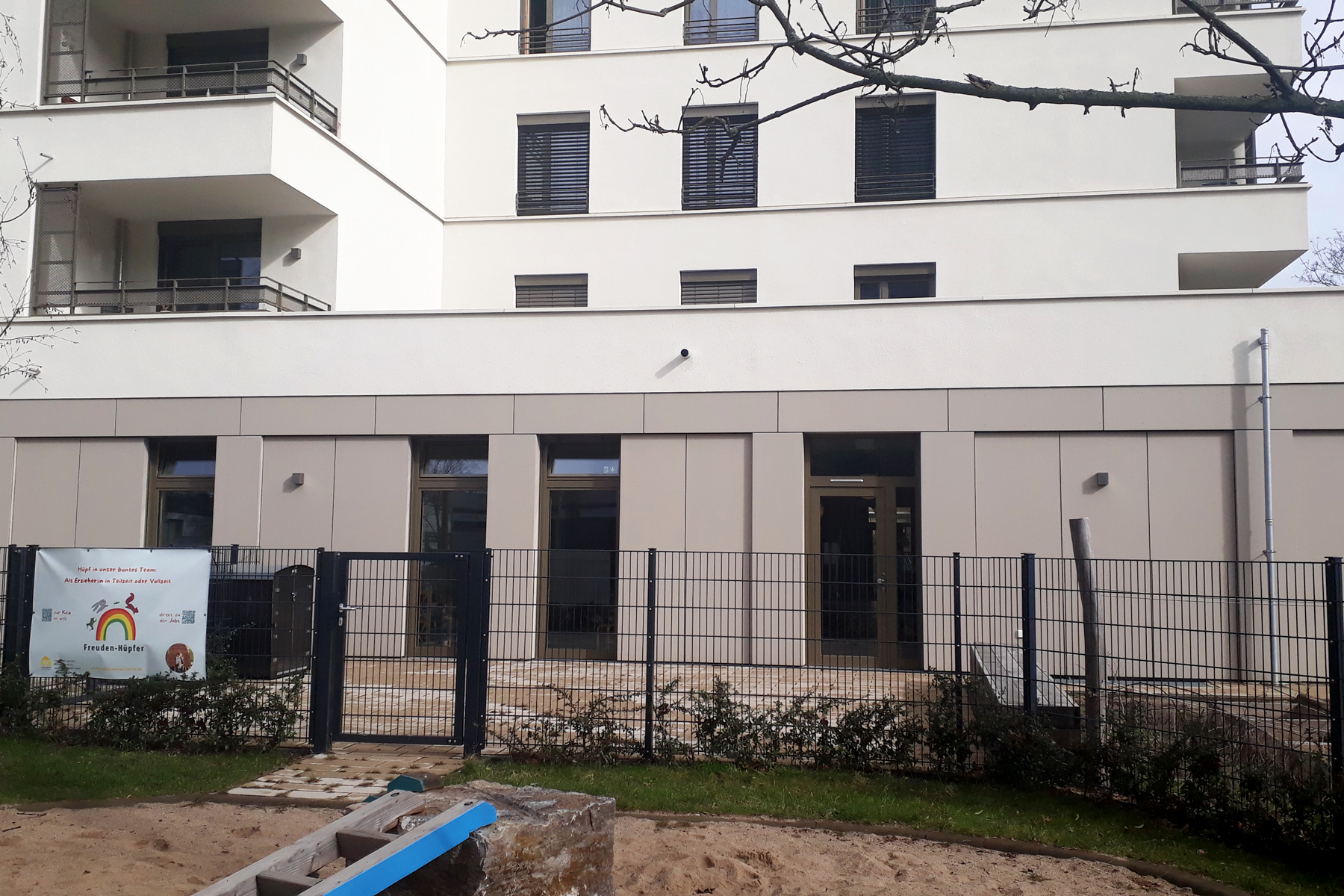 Die Kita Freuden-Hüpfer in Spandau (Falkenhagener Feld) wurde im Februar 2023 neu eröffnet. Hier begleiten wir bis zu 65 Kinder mit Fürsorge, Humor und Verlässlichkeit. Haus und Außenbereich bieten viel Platz für lebhafte Entdecker*innen im Alter von 1 Jahr bis zum Schuleintritt. Es werden auch Kinder mit besonderen Bedarfen aufgenommen.