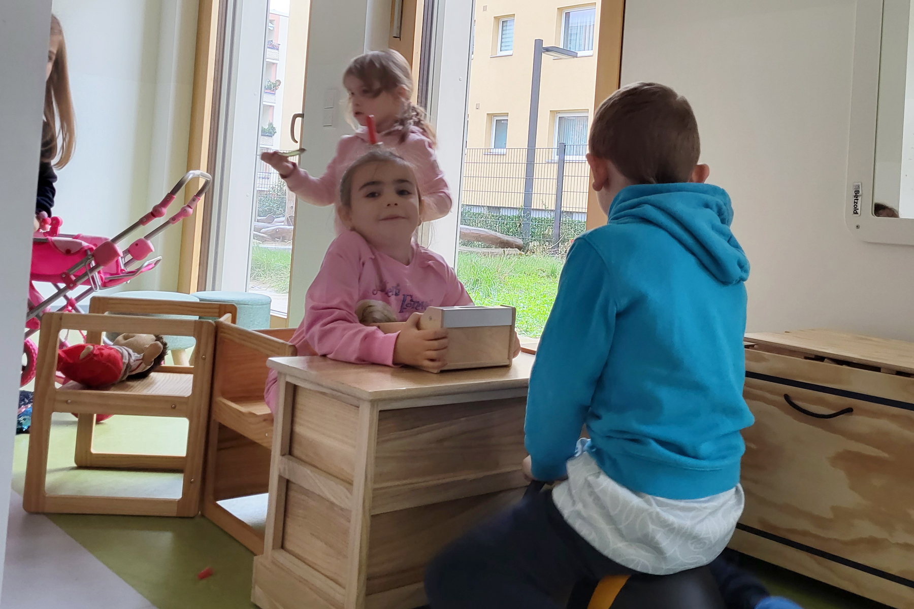• multifunktionale Gruppenräume mit diversen Schwerpunkten: Ruhe und Rückzug, Sehen/Fühlen/Erfahren, Rollenspiele, Forschen