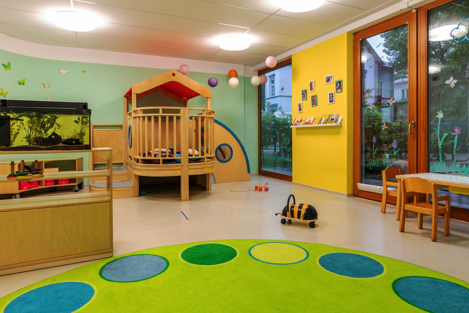 Unterschiedlich gestaltete und an den Bedürfnissen der Jüngsten unserer Einrichtung orientierte Räume eröffnen den Kindern die Möglichkeit, sich nach ihren Bedürfnissen zu bewegen und zu beschäftigen. Unterstützt werden sie hierbei von Fachkräften, die sie liebevoll unterstützen, dabei immer das Wohl der ihnen anvertrauten Kinder im Blick haben und stets wertschätzend und verständnisvoll handeln.
